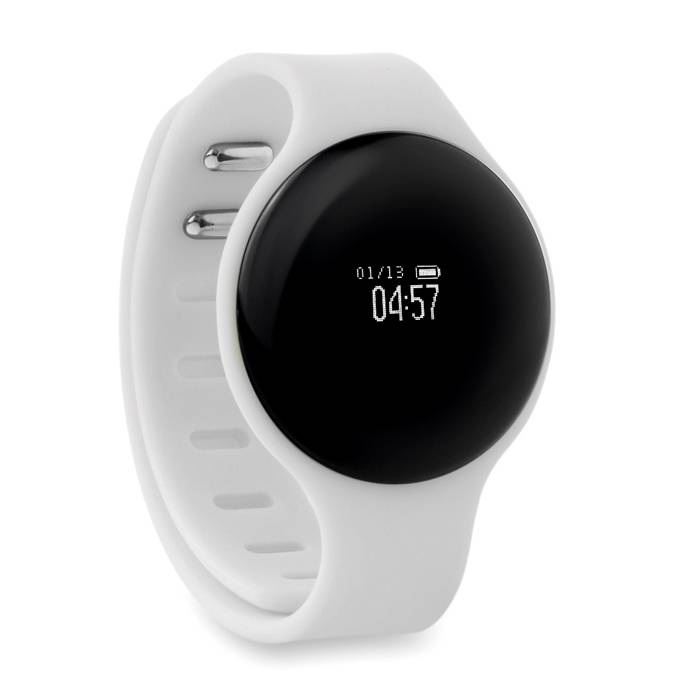 Bluetooth Sport Armband. Aus Silikon. Uhrzeit- und Datumsanzeige. Mit Schritt- und Kalorienzähler, Kilometerleistung pro Tag, Schlafdauer, Alarm-Funktion sowie Hinweis bei eingehenden Anrufen. Der Download der kostenlosen App (Very fit 2.0) ist erforderlich. Erhältlich für iOS und Android. Farbe: weiß. Anfragen über info@takutrends.de