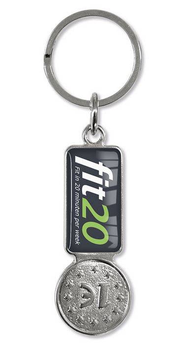 Der Schlüsselanhänger Coiny ist mit beidseitigem Doming umsetzbar.
