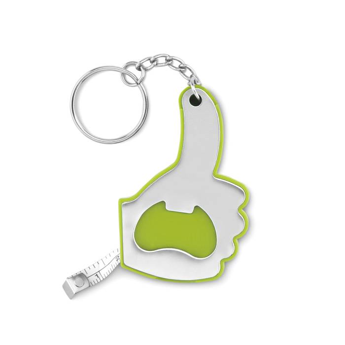 Schlüsselring mit Kapselheber und 1m Maßband. Design "Like". Farbe: limettengrün. Anfragen über info@takutrends.de