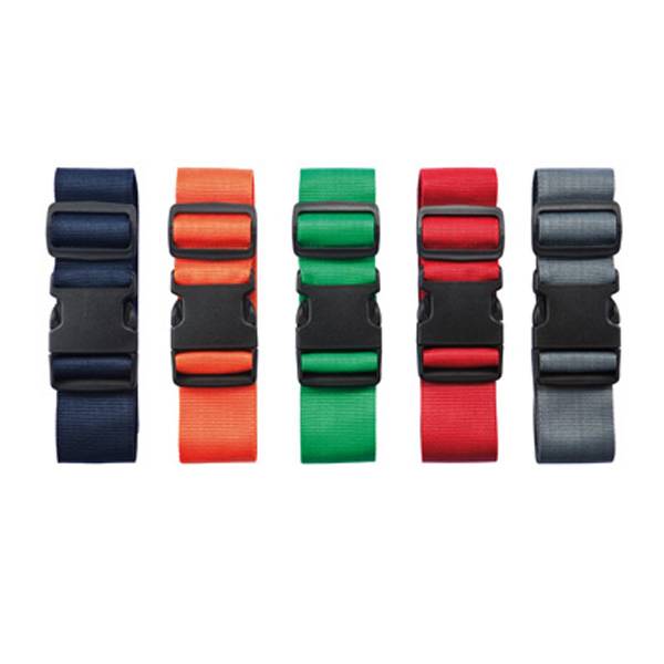 Koffergurt mit schwarzem Verschluss aus Kunststoff, 200x5 cm, erhältlich in grau, rot, blau, grün und orange.