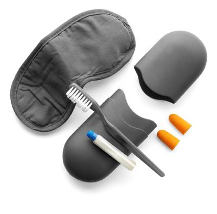Reiseset 'Express' aus Kunststoff, bestehend aus Kunststoff-Etui, Zahnbürste, Zahnpasta, Ohrstöpsel, Schlafbrille und Socken