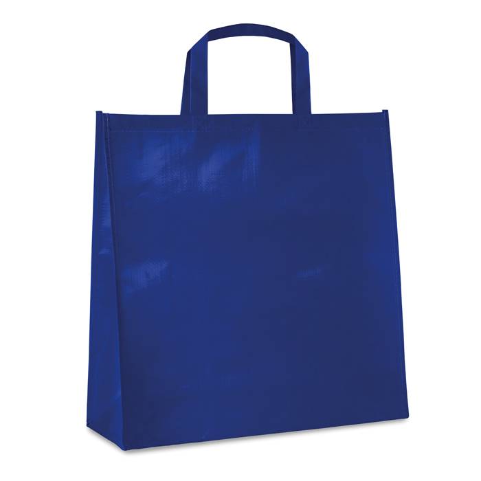 Einkaufstasche mit kurzen Tragegriffen. Aus laminiertem PP Woven. 120 g/m². Farbe: blau. Anfragen über info@takutrends.de