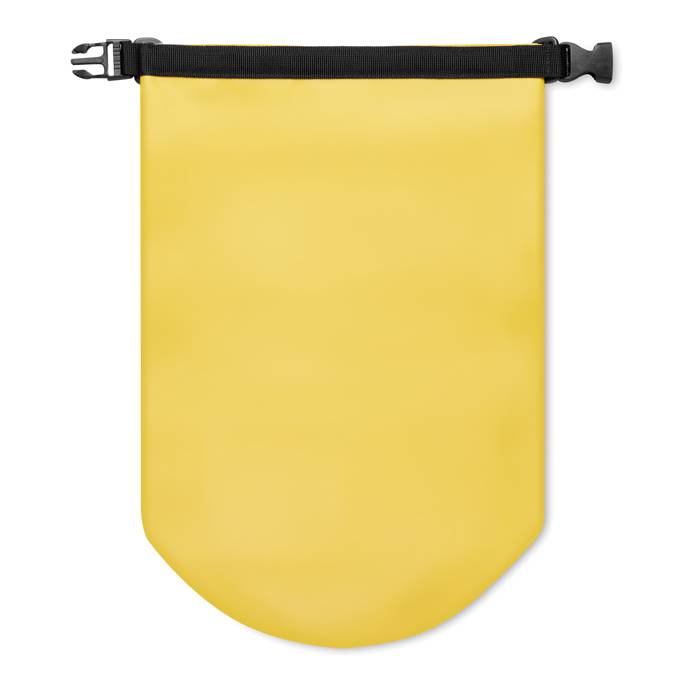 Wasserfester Beutel aus PVC. Mit Schultergurt. Rollschließmechanismus mit Steckverschluß. Schützt vor Wasser, Schmutz und Sand. Füllmenge: 10l. Farbe: gelb. Anfragen über info@takutrends.de