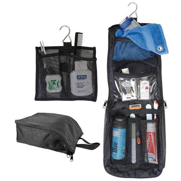 Hochwertige Kulturtasche aus Nylon mit Metallhaken zum Aufhängen. Innen befinden sich diverse Fächer für Ihre Pflegeutensilien. Die vordere Klappe kann bedruckt werden und bietet eine ideale Fläche für Ihre Werbeanbringung.