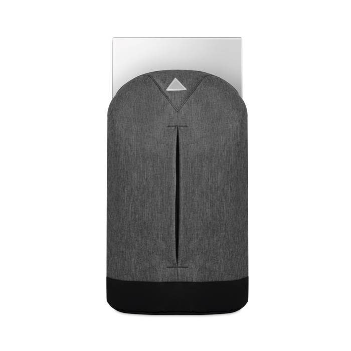 Diebstahlsicherer Rucksack mit kleiner Reißverschlussaußentasche. 600D Polyester. Farbe: schwarz. Anfragen über info@takutrends.de