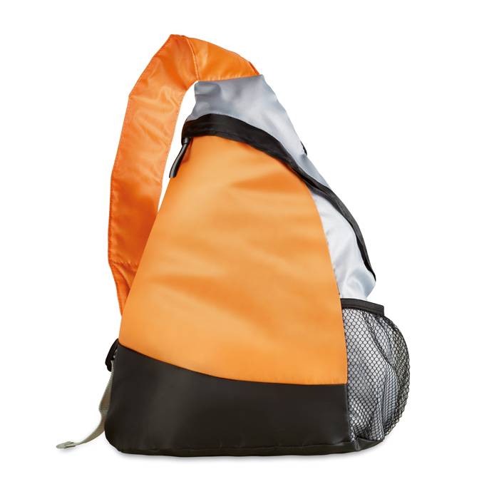 Super leichter Rucksack in Dreiecksform und einer seitlichen Netztasche. 210D Polyester. Farbe: orange. Anfragen über info@takutrends.de