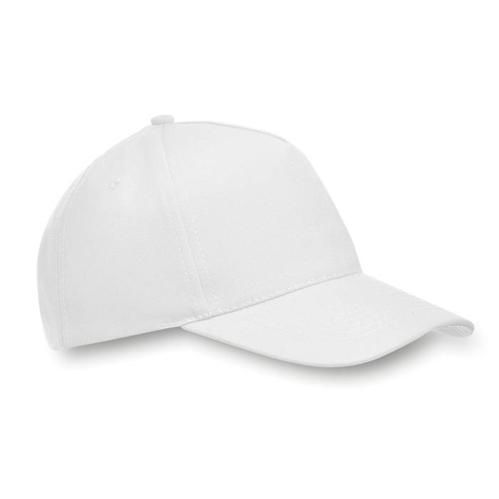 Baseball Kappe. Aus Polyester-Twill. 5 Panels. Mit verstellbarem Kunststoff Snap-Verschluss. Größe 7 1/4. Farbe: weiß. Anfragen über info@takutrends.de