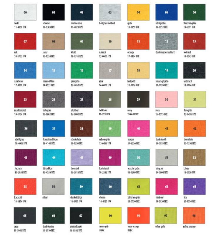 | Größe | S, M, L, XL, XXL (XXXL nur in 00, 01, 02, 06) |