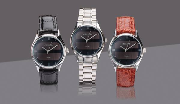 • Metallgehäuse • 3-Zeiger-Uhrwerk • gedruckter Index • gedrucktes Logo • schwarzes Lederarmband in Kroko-Optik • in Geschenkbox mit braunem Lederarmband in Kroko-Optikund Edelstahlarmband • wasserdicht 3 ATM • solarbetrieben/Kondensator