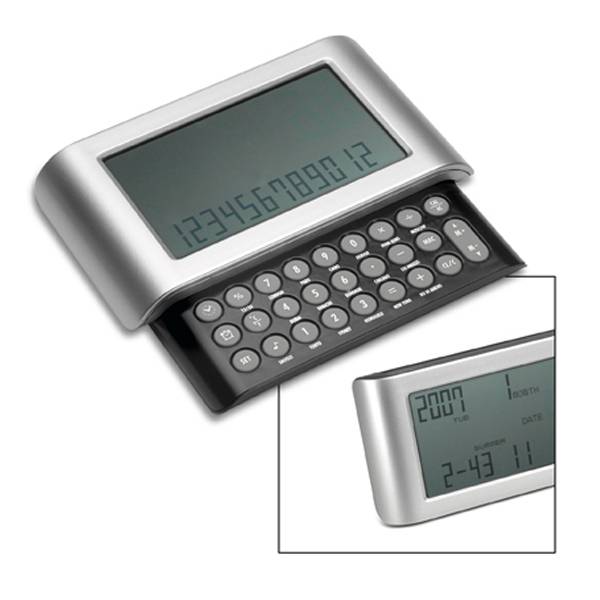 Taschenrechner mit Weltzeituhr, 12 stellig, 12/24-Stundenanzeige, Batterie inklusive, Datum, Schlummerfunktion, Ständer, Thermometer, Weltzeituhr, Wochentag wird angezeigt, CE, schwarz, silber, Kunststoff, REFLECTS Verpackung