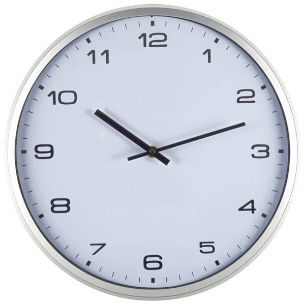Wanduhr mit silbernem Rahmen und Click-System