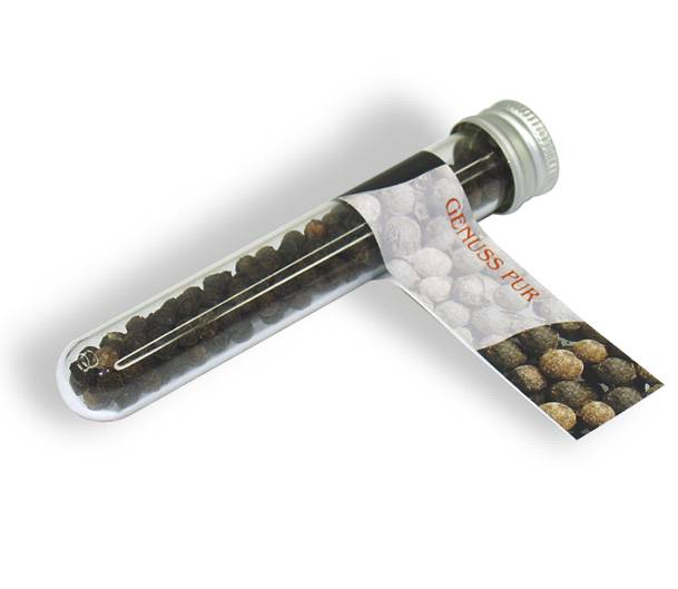 Der Pfeffer im Reagenzglas als Kundenpräsent Weihnachten von Taku Trends. Setzen Sie auf kleine attraktive und kreative Präsente zum Jahresabschluß für Ihre Kunden und Mitarbeiter.