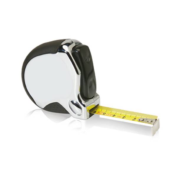 Verchromtes Kunststoffgehäuse mit verbessertem Grip durch Gummirand, metrisch, mit Stopper und Gürtelclip.