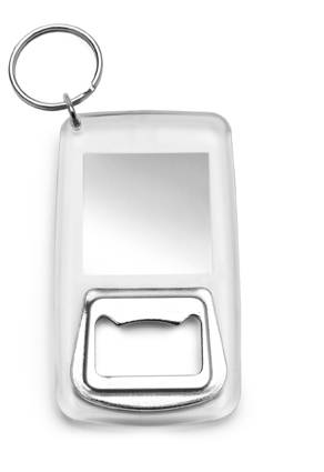 Schlüsselanhänger '2in1' aus Kunststoff, inklusive Kapselheber, Lieferung ohne Papiereinleger