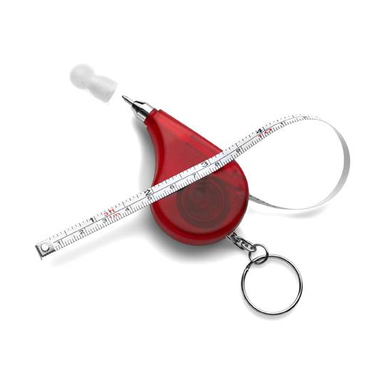 Schlüsselanhänger 'Multi' aus Kunststoff, transparent gefrostet/vollfarbig, inklusive Kugelschreiber (schwarze Mine), Maßband (1m) und Schlüsselkette