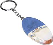 Schlüsselanhänger 'Space' mit Lupe und Leuchtfunktion aus Kunststoff, transparent gefrostet, Schlüsselring aus Metall, inklusive Batterien